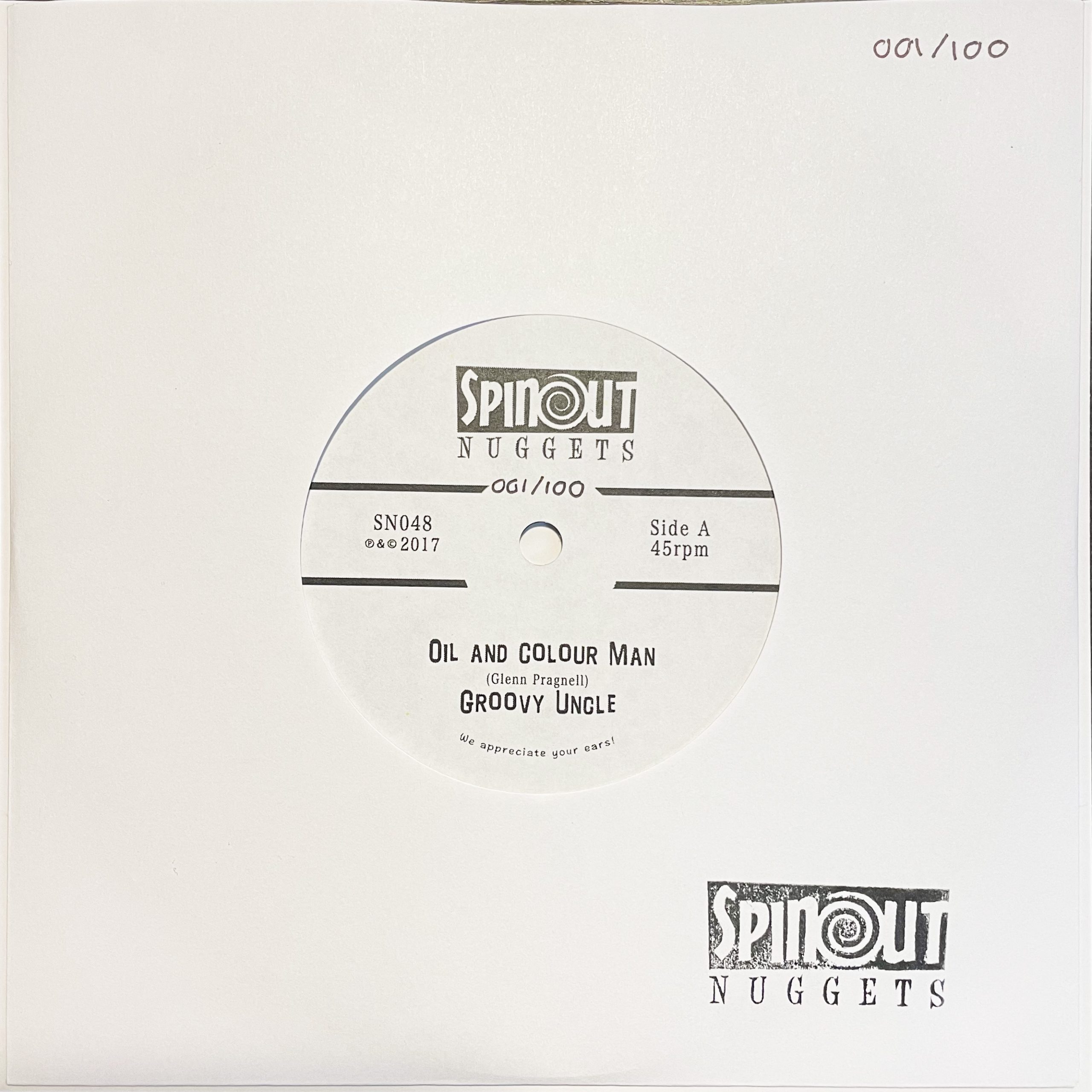 Nine studio albums in, with countless contributors, Glenn continues to release the Groovy Uncle discography through his own record label, Trouserphonic Records. For some time, Spinout Nuggets have wanted to release 2017’s ‘Oil And Colour Man’ (from A Clip Round The Ear album) on a 7″, and it’s perfect timing now to pair it up with ‘Saturday Afternoon’ (first time on vinyl) from 2021’s ‘Searching For The Grown-Ups’ album.